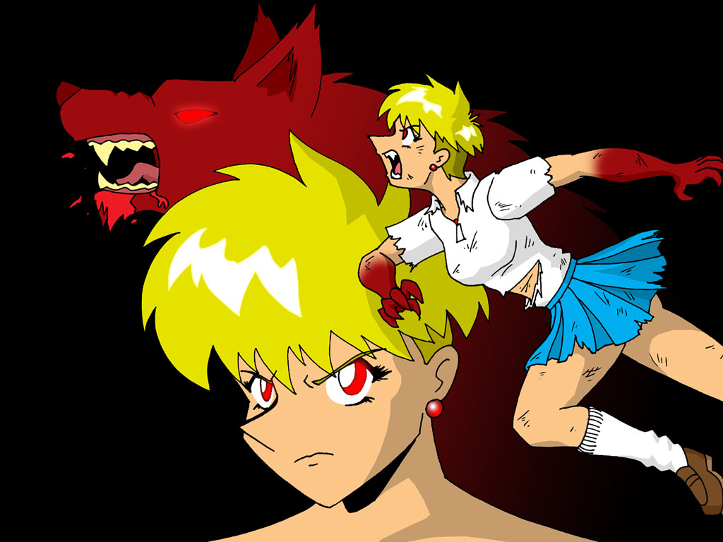 Mariko = War. I usually do composite pics like this as separate images, and scan them in and put them on different layers in PhotoShop. I tried drawing this one as-is, and for once it came out alright.