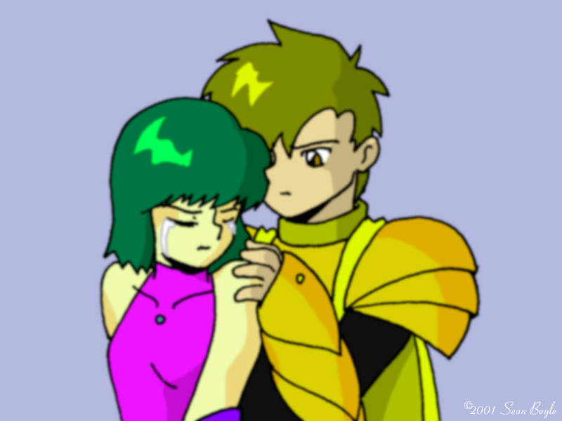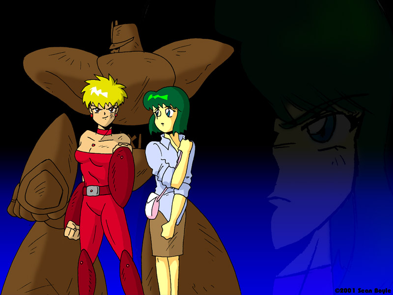 Delphus, Mariko, and Naoko. This picture was originally just a logo, but I put way too much work into it to just leave it at that. I added an old picture of Naoko I had to the background, even though the shading on her is way off.