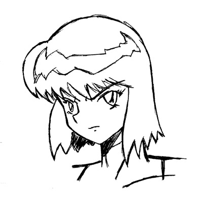 Naoko Face, Ink Sketch. I recently found this one on the floor in my basement. Artboy liked it, so I put it up here. This was a sketch done on lined paper, entirely in ink (no pencil at all). 400x400, 44k.