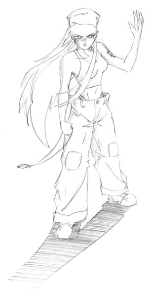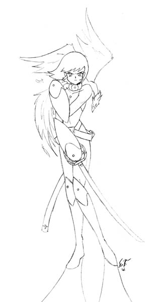 Wing Blade (sketch). This is the picture of Naoko I had said I was working on. I still need to color it, but I thought I'd put it online pre-colored to give people and idea of what it looks like so far. 304x600, 25k.