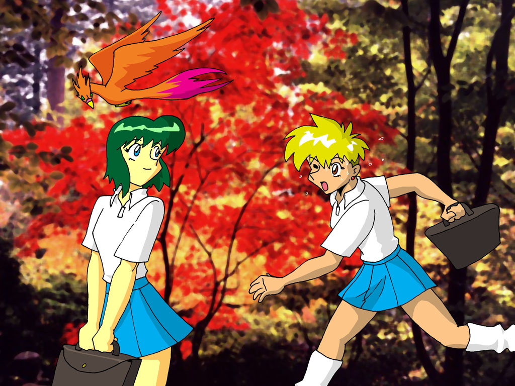 Late Mari. As usual, Mariko is late catching up with Naoko on the way to school.