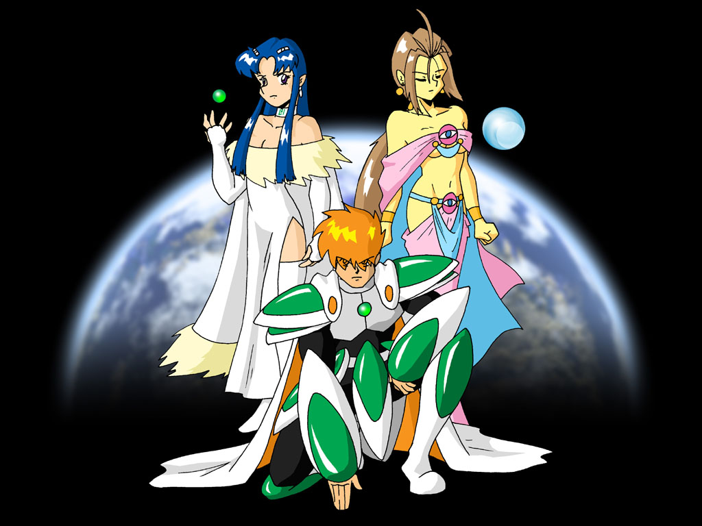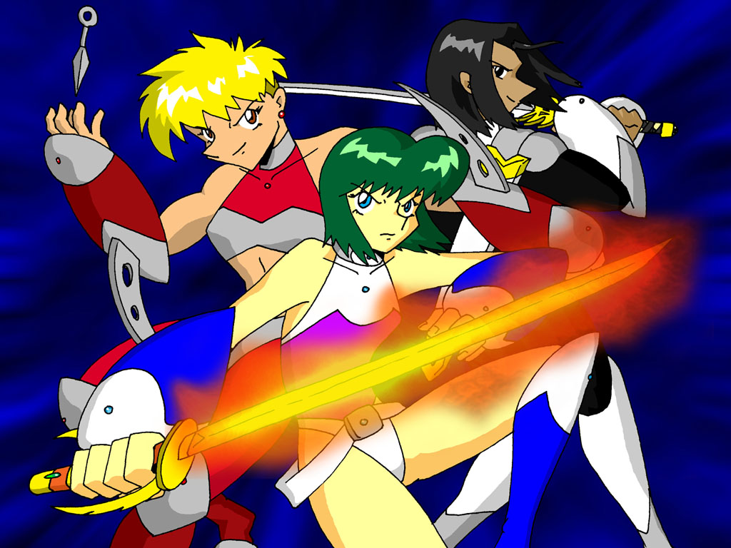 Metal Pose. Naoko, Mariko, and Yun, the three Demons, ready for battle.