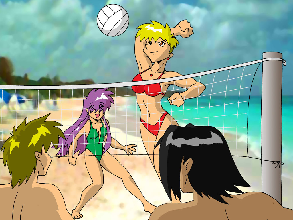 Beach Volleyball. The gang playing a friendly game by the ocean under the summer sun.