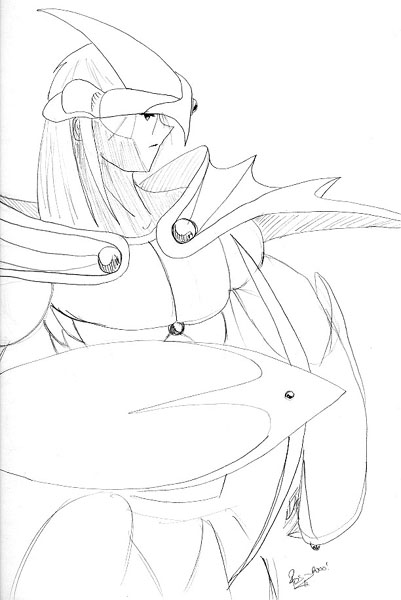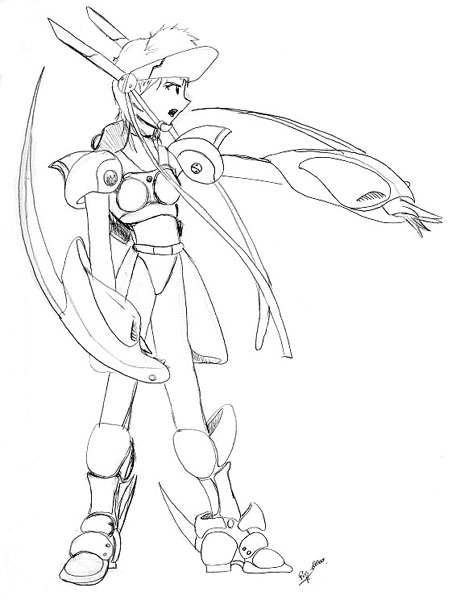 Mariko in the future, by Artboy. Blades, blades, and more blades! 452x600, 56k