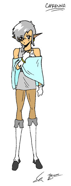 Ch'Renna, the elven priestess of the dragons. She helps raise Whiteye, and has a powerful silver dragon hiding within her. |