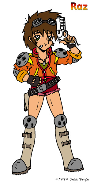 Raz. It's Raz... little girl, big gun... the picture doesn't do the gun justice. She also drives a little tank, sort of like Bonaparte from Tank Police. |