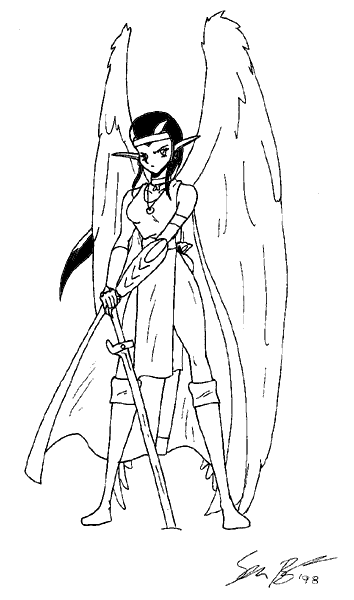 Talyona, the first player-character in the first game I ever ran... A winged elf, priestess of the god of magic. |