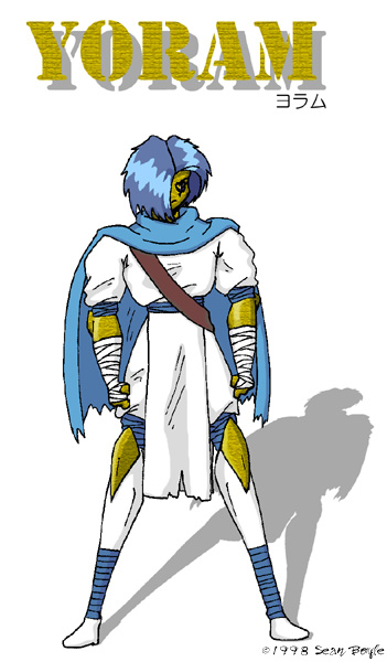 Yoram, from a game I ran a long time ago. He's an intelligent golem, with a powerful gem in his right eye. He keeps it covered with hair to keep anyone from seeing it. He lost his memory, and was searching for his creator (who turned out to be an evil arch-wizard). |
