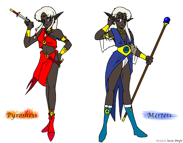 The Twins, Pyroshess and Mertess. Fire and water mages, respectively.