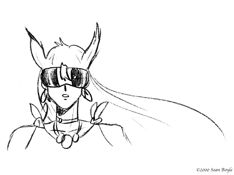 Gryphon, her visor down. Here's a pencil sketch closeup on Gryphon with her laser-sight visor down.
