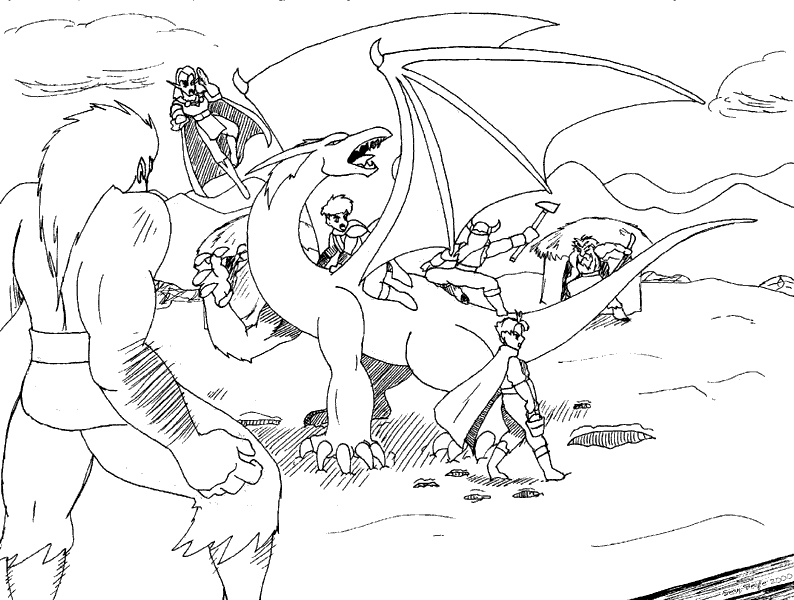 Mountaintop. This is a scene from Whiteye's adventures, where she and the others travelled to a mountaintop inhabited by frost giants to get "a bit of snow from the highest peak in the range", which they must then "melt over the fires of the earth". The frost giants, needless to say, weren't too happy.