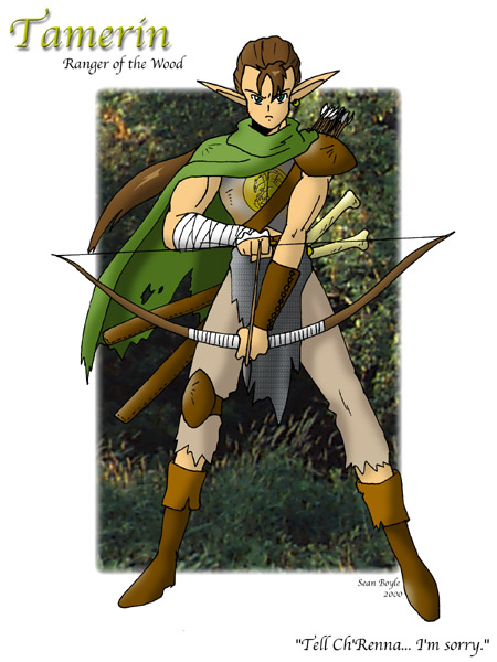 Tamerin, Ranger of the Wood. Tamerin, the young man who raised Whiteye from an early age (who she considers her father) was a human paladin, killed by a dragon named Greenscale. A wacky old druid found Tamerin and reincarnated him as an elf. As a result, Tamerin's memories of his former life have vanished, and he has gone on to become a ranger.