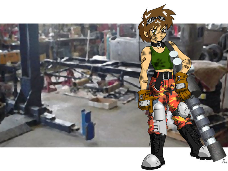 Garage Shop Guns. Raz and two of her firearm creations in her garage. This was made for my schedule at work just to make it interesting.