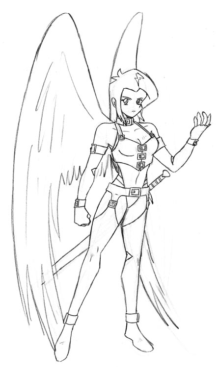 Secaala again; a much rougher sketch of her new outfit. I like the outfit, but the sketch needs to be cleaned up alot. 391x756, 40k.