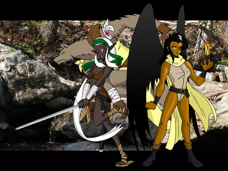 Ladies. Three female NPCs from a D&D game I'm doing: Zharra the gnoll, Falar'ri the dark elf, and Secaala the erinyes. And yes, they are the good guys.